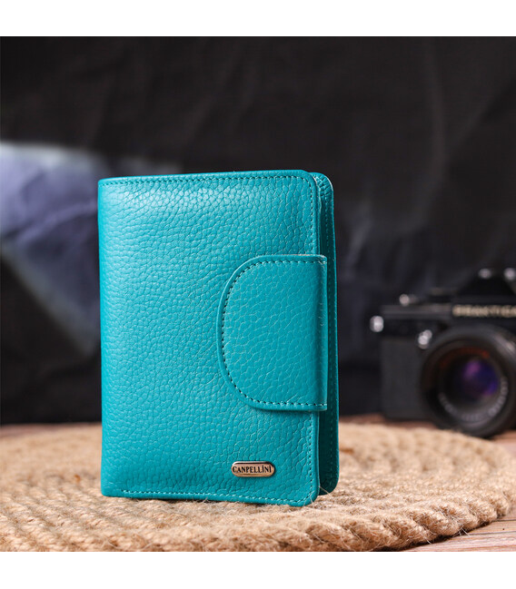 Яскравий вертикальний гаманець із натуральної шкіри CANPELLINI 21678 Бірюзовий