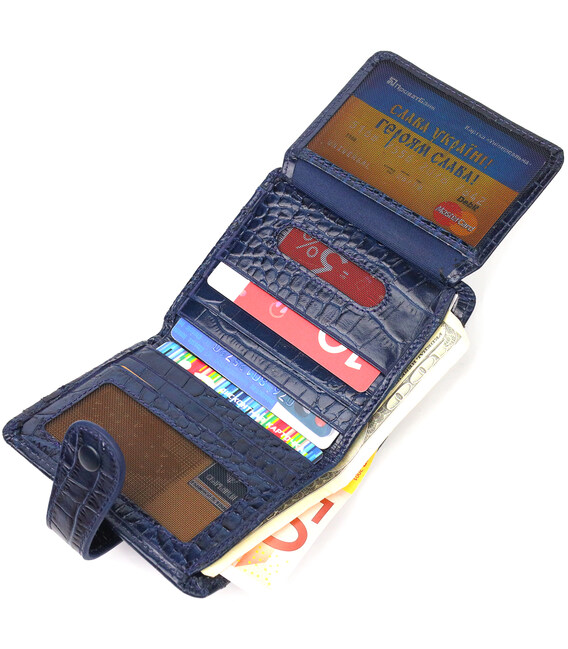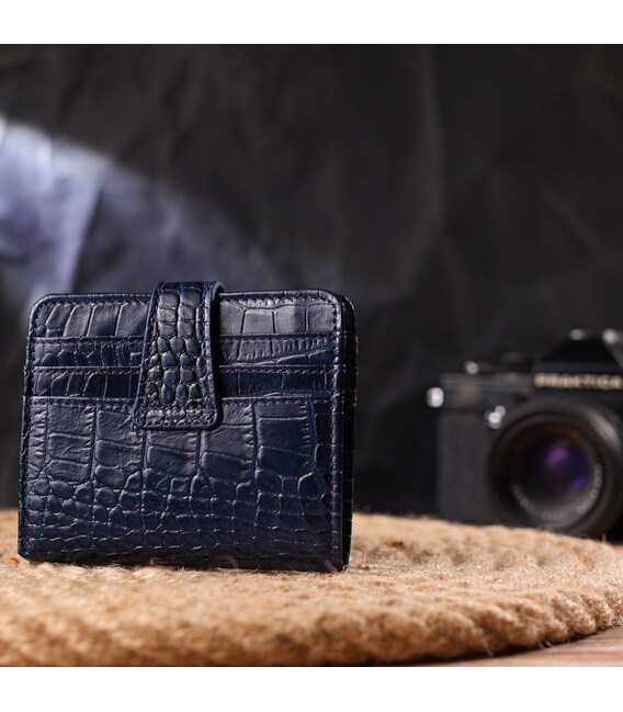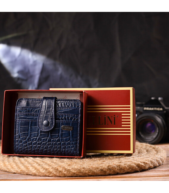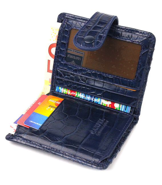 Цікавий гаманець із натуральної шкіри з тисненням під крокодила CANPELLINI 21687 Синій