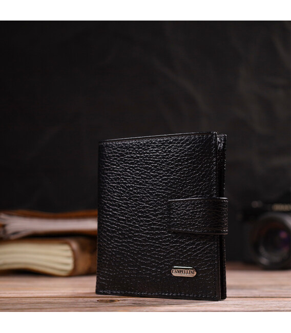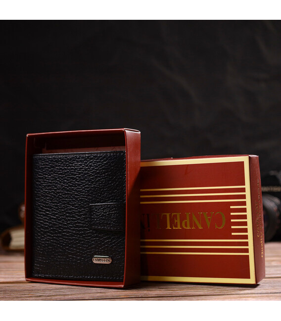 Стильний чоловічий гаманець у комбінації двох кольорів із натуральної зернистої шкіри CANPELLINI 21728 Чорний