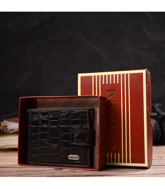 Фактурний невеликий чоловічий гаманець з натуральної шкіри з тисненням під крокодила CANPELLINI 21747 Чорний
