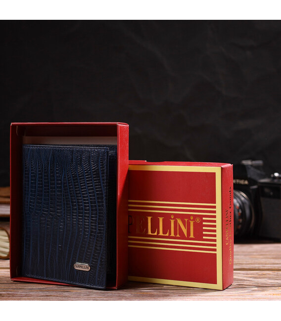 Чоловічий гаманець з натуральної шкіри вертикального формату з тисненням CANPELLINI 21752 Синій