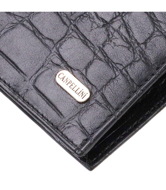 Чоловічий гаманець без застібки горизонтального формату з натуральної шкіри з тисненням під крокодила CANPELLINI 21766 Чорний