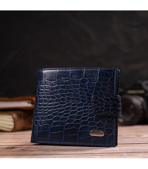 Гаманець для чоловіків горизонтального формату з натуральної шкіри з тисненням під крокодила CANPELLINI 21769 Синій