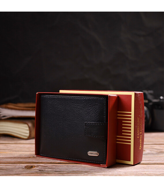 Класичний чоловічий гаманець із натуральної шкіри флотар CANPELLINI 21791 Чорний