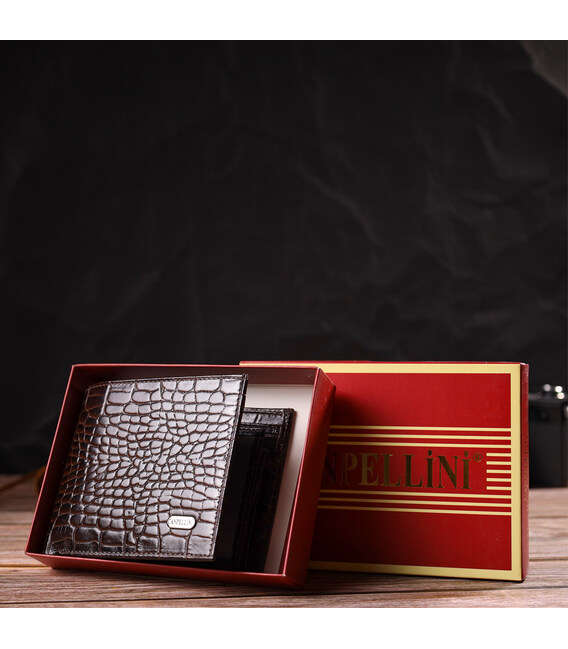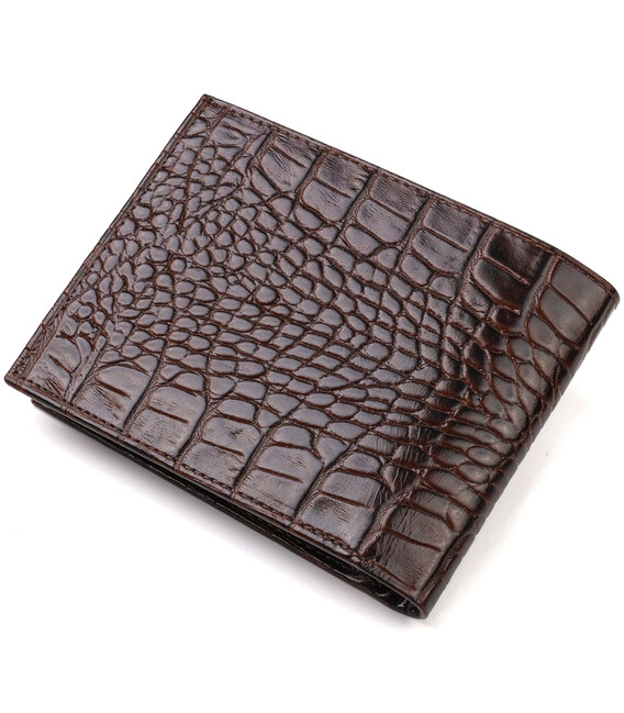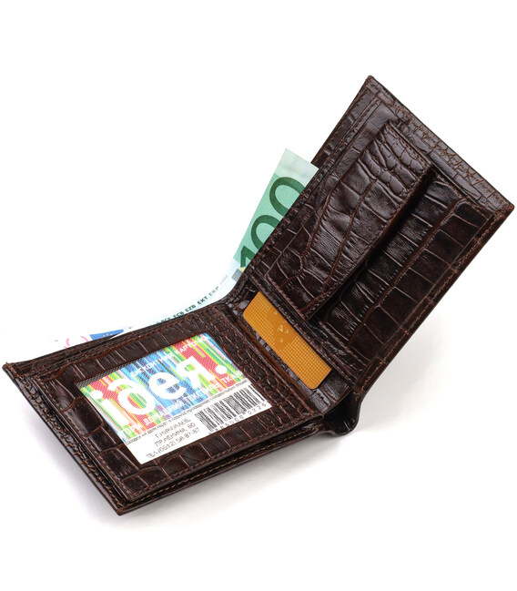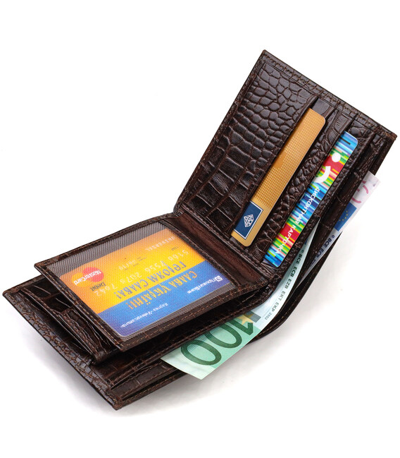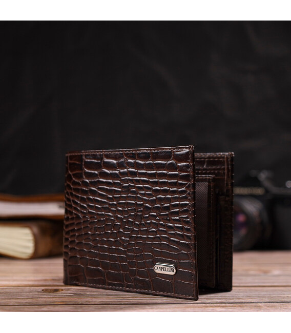 Горизонтальний чоловічий гаманець середнього розміру з натуральної шкіри з тисненням під крокодила CANPELLINI 21860 Коричневий