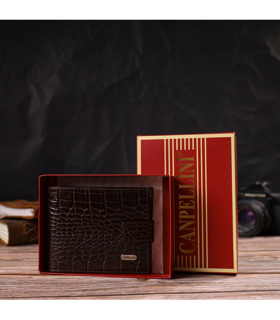 Функціональний горизонтальний гаманець для чоловіків з натуральної шкіри з тисненням під крокодила CANPELLINI 21885 Коричневий