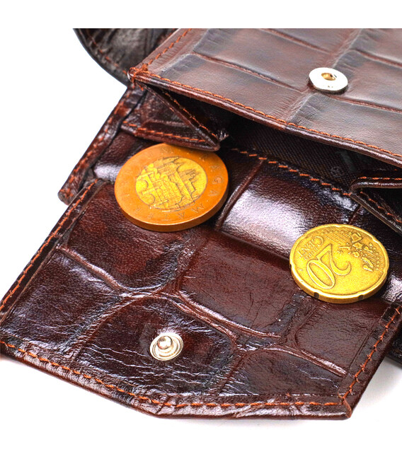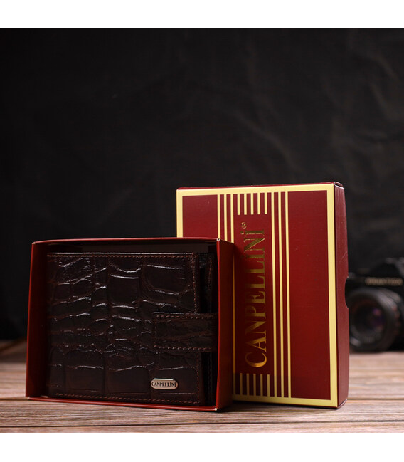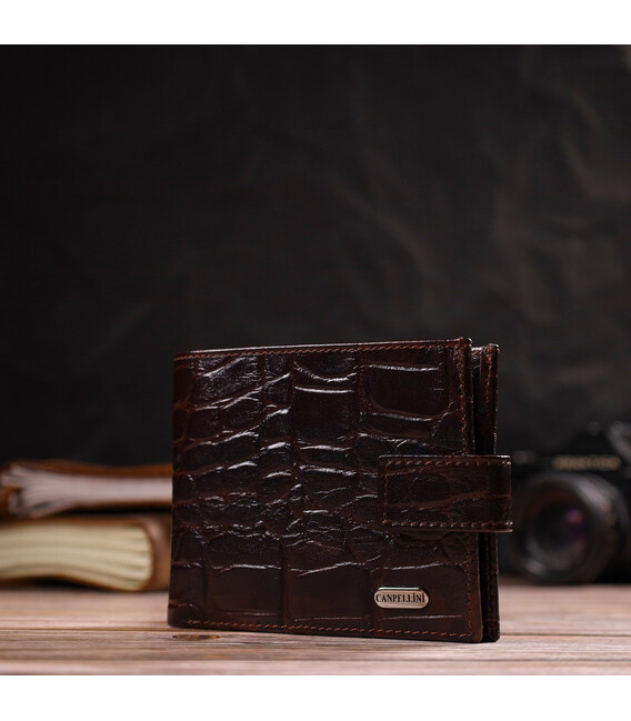 Детальніше Стильний горизонтальний гаманець для чоловіків з натуральної шкіри з тисненням під крокодила CANPELLINI 21890 Коричневий