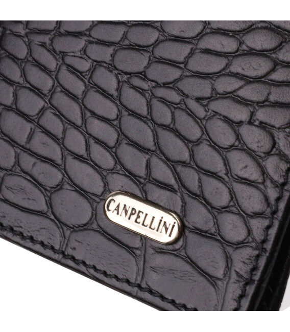 Детальніше Привабливий вертикальний чоловічий гаманець із натуральної шкіри з тисненням під крокодила CANPELLINI 21896 Чорний
