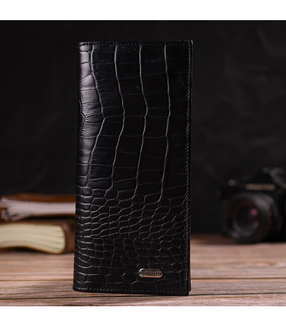 Привабливий вертикальний чоловічий гаманець із натуральної шкіри з тисненням під крокодила CANPELLINI 21896 Чорний