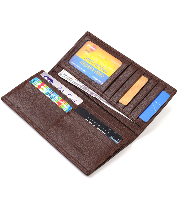 Місткий чоловічий гаманець із натуральної шкіри. Аксесуар має одне основне відділення для купюр усіх номіналів, одинадцять осередків для карток, кишеню під сіточкою для пропуску, дві приховані кишені та монетницю на блискавці. Закривається аксесуар навпіл без застібки. На лицьовій стороні, у правому нижньому куті металевий логотип компанії виробника. Купуючи шкіряний аксесуар цієї фірми, собі або на подарунок, будьте певні, що він прослужить Вам не один рік.