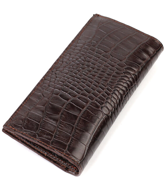 Детальніше Практичний чоловічий вертикальний гаманець із натуральної шкіри з тисненням під крокодила CANPELLINI 21907 Коричневий