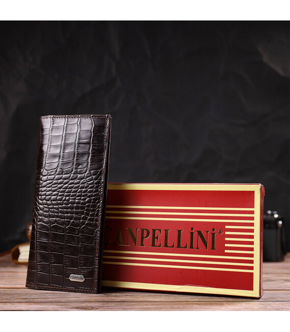 Практичний чоловічий вертикальний гаманець із натуральної шкіри з тисненням під крокодила CANPELLINI 21907 Коричневий