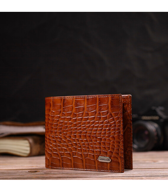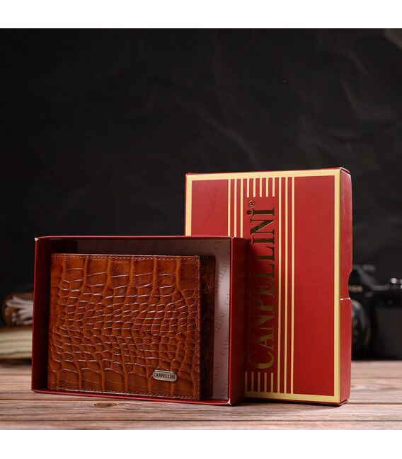 Сучасний гаманець для чоловіків з натуральної шкіри з тисненням під крокодила CANPELLINI 21574 Коричневий
