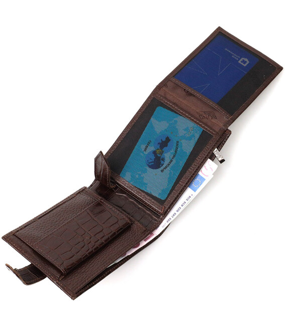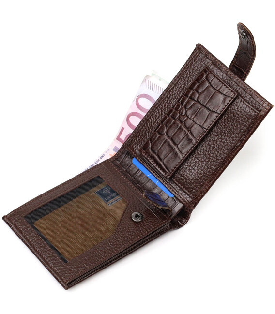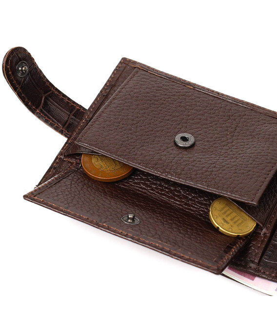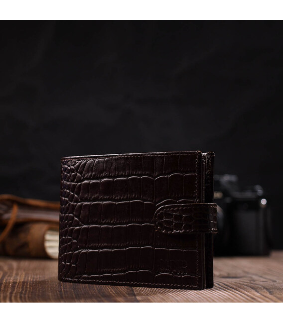 Функціональний гаманець середнього розміру для чоловіків з натуральної шкіри з тисненням під крокодила BOND 21999 Коричневий