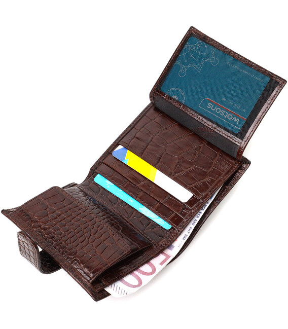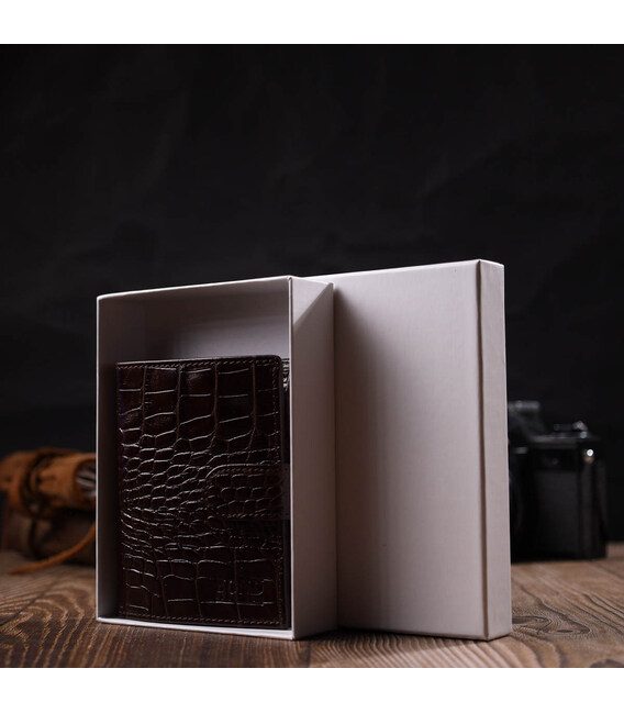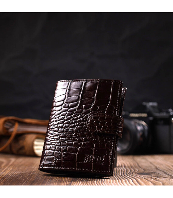 Детальніше Фактурний чоловічий вертикальний гаманець із натуральної шкіри з тисненням під крокодила BOND 22003 Коричневий