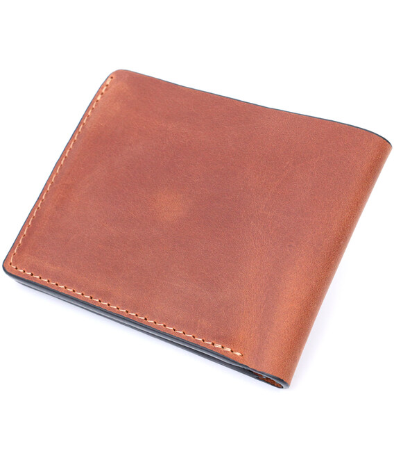 Невеликий чоловічий гаманець із італійської вінтажної шкіри найвищої якості у гарному коричневому кольорі. Сучасний дизайн, елітна шкіра, якісна фурнітура – все це підкреслює справді якісну річ. Всередині портмоне виконаний також з натуральної шкіри, без тканинної підкладки. Аксесуар підкреслить вашу індивідуальність та відмінний смак. Впевнені, що такий подарунок оцінить будь-який чоловік. Запакований гаманець у фірмовий чохол.