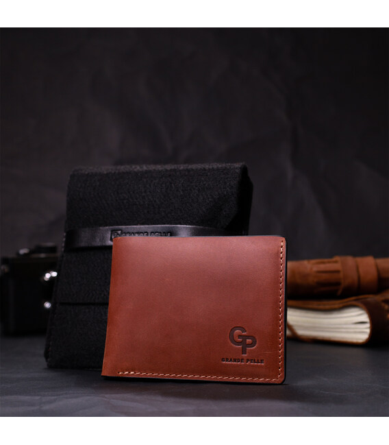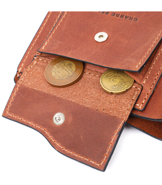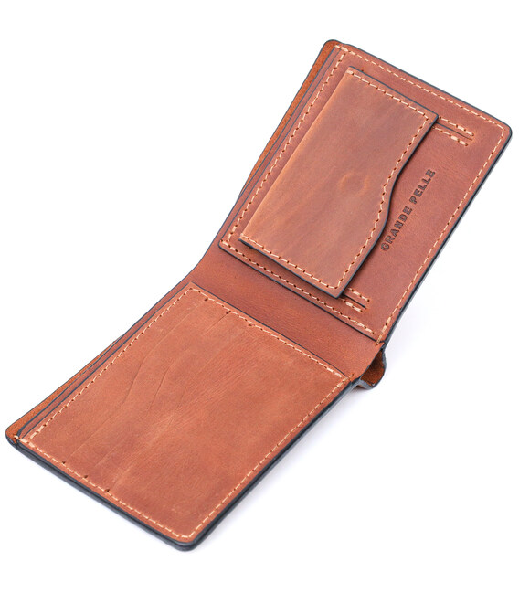 Компактний гаманець із натуральної шкіри без застібки GRANDE PELLE 11661 Коричневий