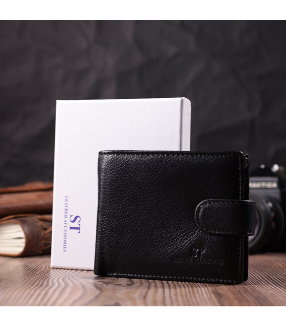 Гаманець для чоловіків зручного розміру із натуральної шкіри ST Leather 22461 Чорний