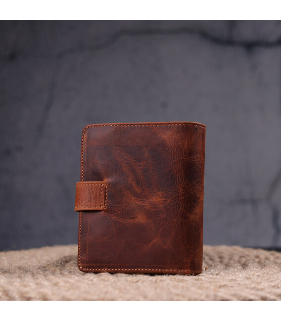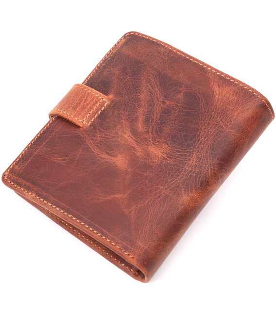 Прекрасне портмоне з натуральної шкіри вінтажної шкіри в сучасному дизайні і незвичайному рудому кольорі. Такий аксесуар оцінять любителі натуральних та якісних речей, виріб виконаний з натуральної шкіри високої якості. Портмоне має містке відділення для купюр, слоти для пластикових карток та монетницю. Закривається аксесуар на кнопку. Цей аксесуар чудово підійде як подарунок і принесе виняткову радість близькій людині.