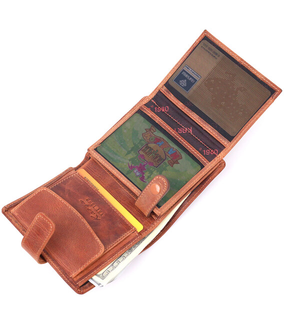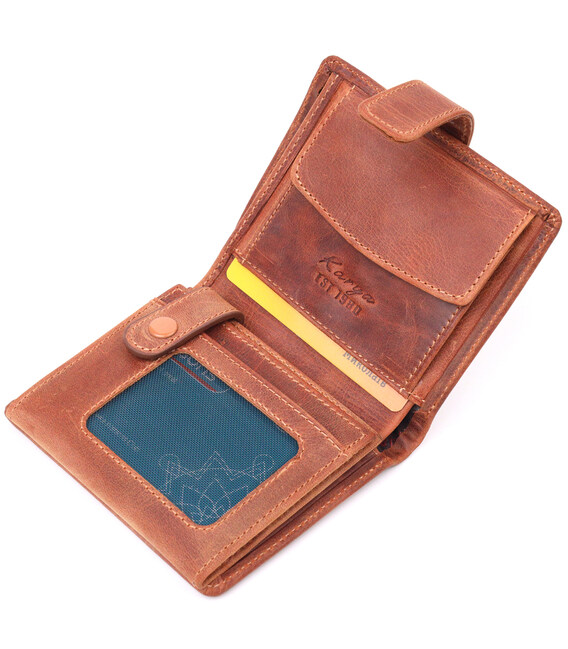 Функціональний чоловічий гаманець у вінтажній шкірі KARYA 21369 Рудий