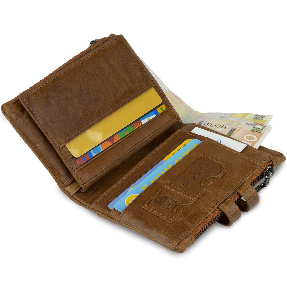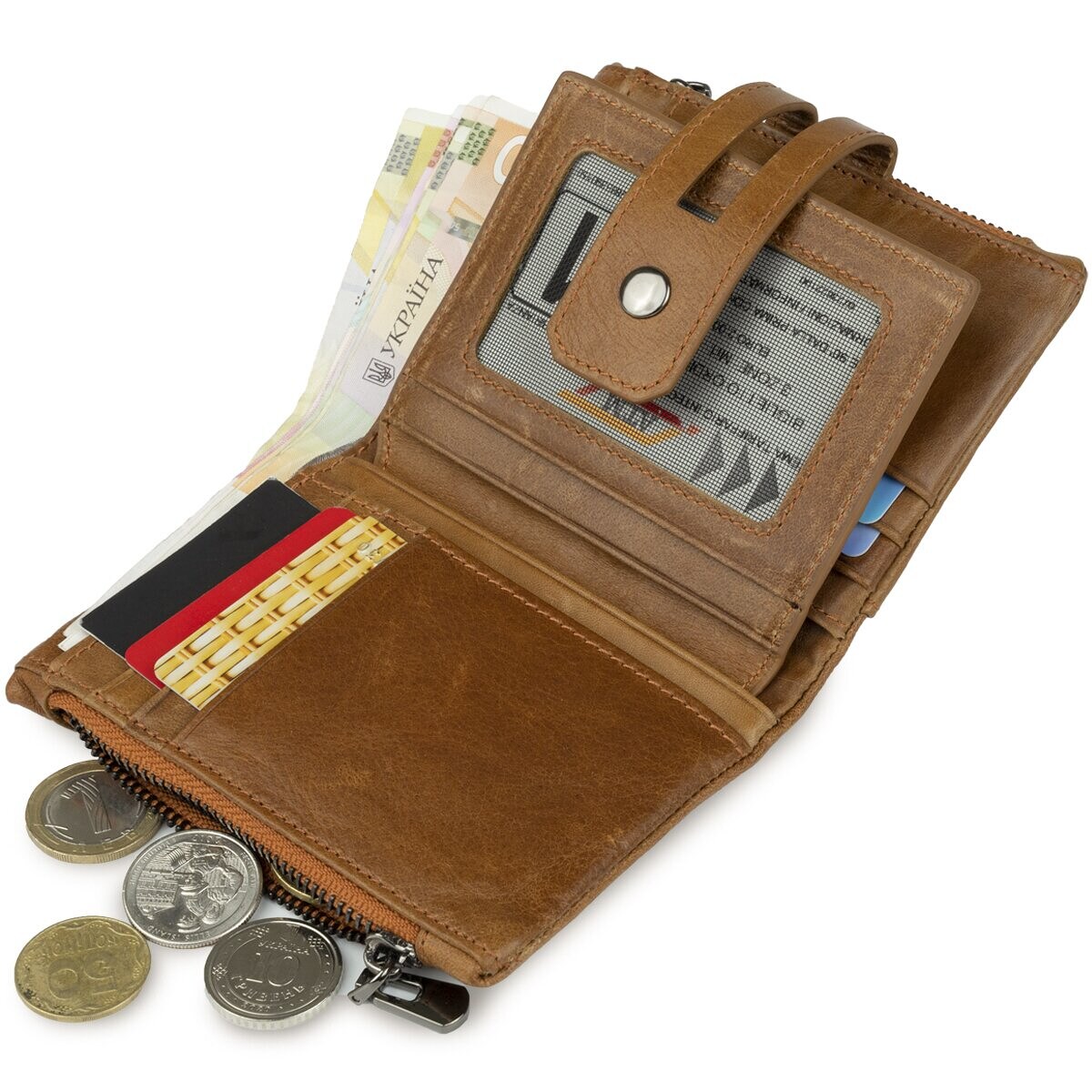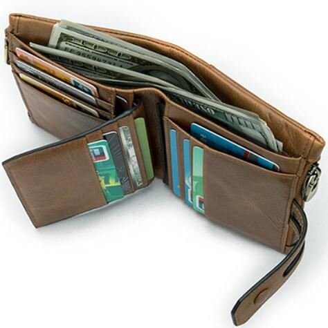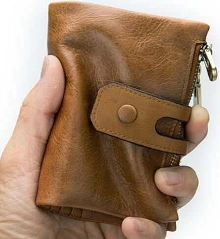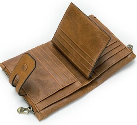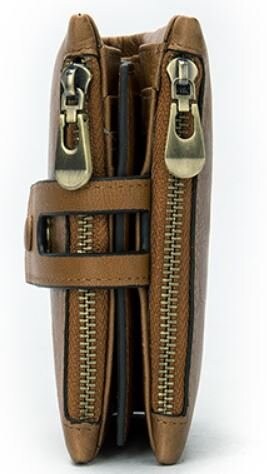 Портмоне з натуральної шкіри, дуже м'яке. Особливістю такої моделі є те, що ви зможете самі регулювати його заповнення хлястиком з двома кнопками. Дві бічні кишені на блискавці для монет або інших дрібниць. Усередині поєднання шкіри і міцного текстилю. Аксесуар поміщається в кишеню джинсів або сумку. Гаманець можна розглянути як варіант для подарунку близькій людині.