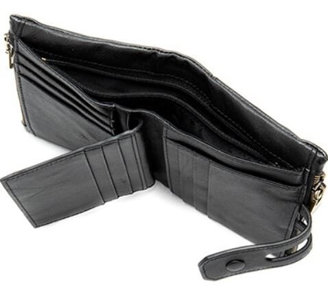Портмоне з натуральної шкіри, дуже м'яке. Особливістю такої моделі є те, що ви зможете самі регулювати його заповнення хлястиком з двома кнопками. Дві бічні кишені на блискавці для монет або інших дрібниць. Усередині поєднання шкіри і міцного текстилю. Аксесуар поміщається в кишеню джинсів або сумку. Гаманець можна розглянути як варіант для подарунку близькій людині.