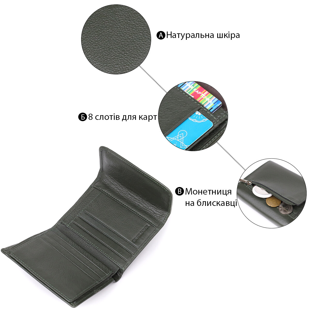 - 1 зовнішня кишеня монет;