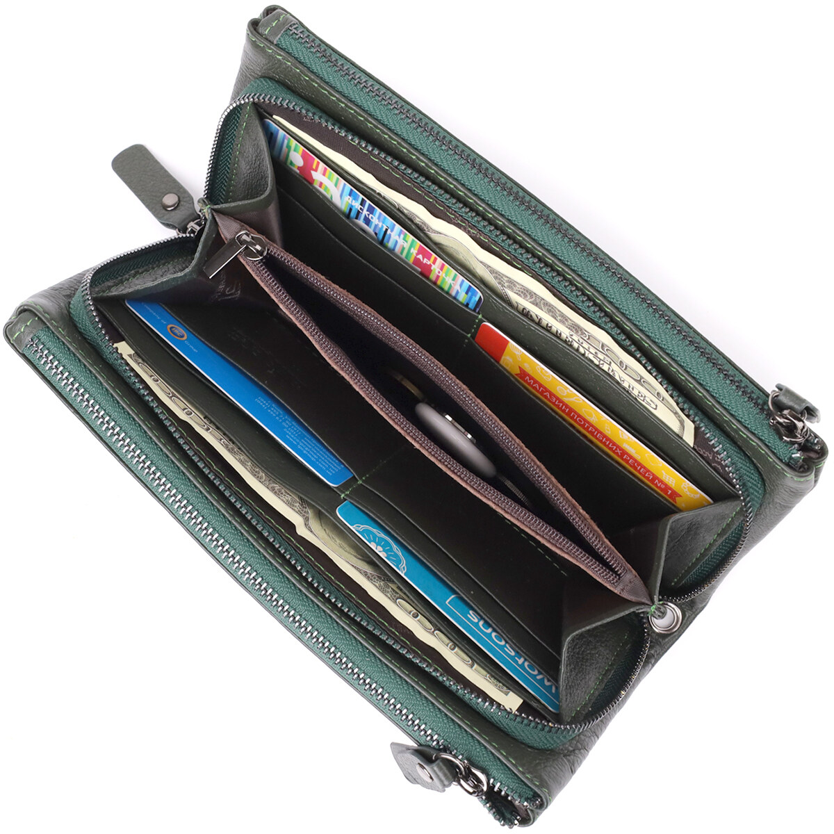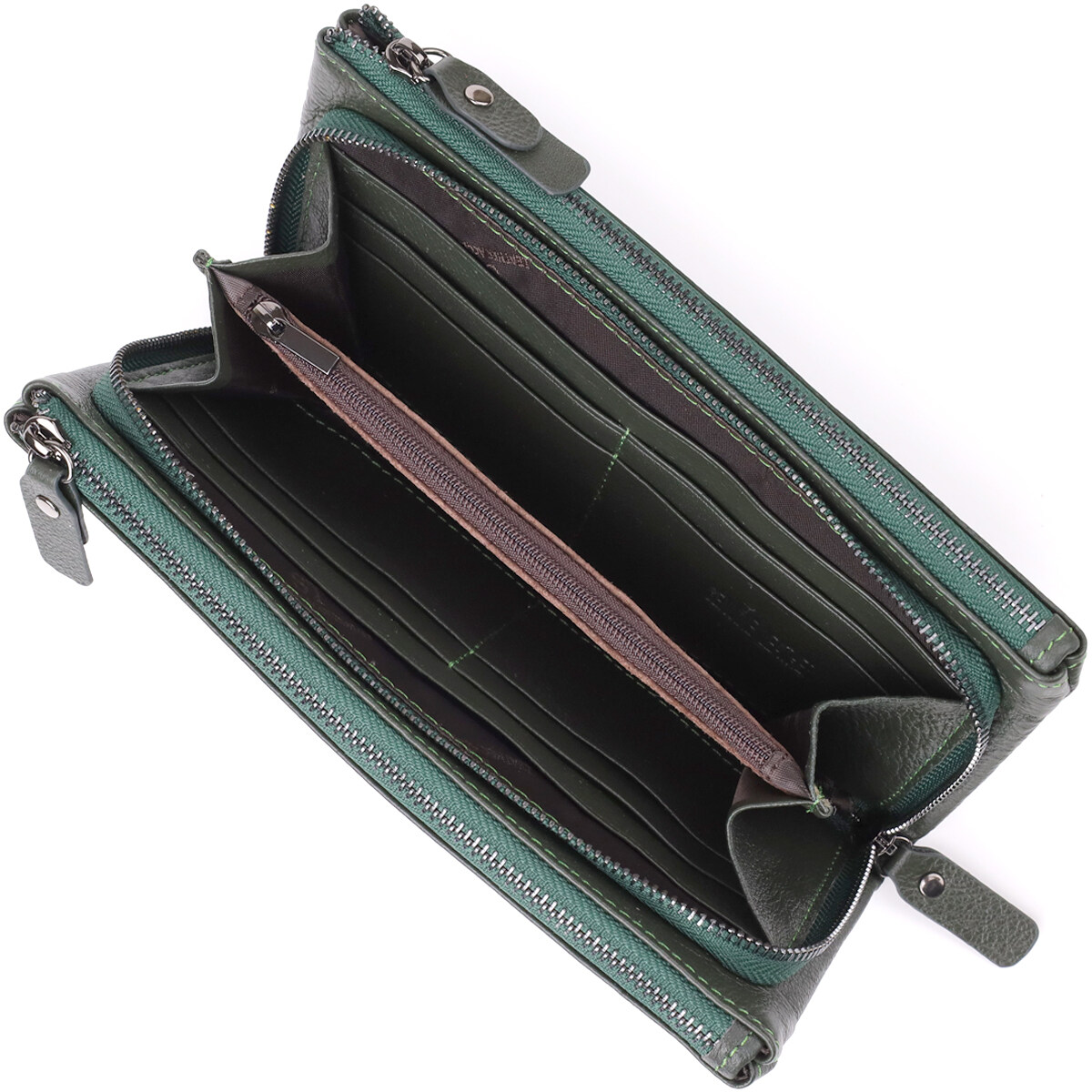 Зручний гаманець-клатч, який відрізняється своєю місткістю. У цю модель легко поміститься ваш смартфон. Таким чином, модель здатна замінити вечірню сумочку. Носити клатч можна за допомогою шкіряного ремінця на зап'ястя. Дві місткі кишені допоможуть зручно розкласти вам гроші, також клатч має достатньо слотів для кредиток. Перевагою даного кольору є те, що він не прив'язує вас до певної палітри кольорів в гардеробі. Він підходить під усе. Сам клатч м'який і приємний на дотик. На лицьовій стороні по центру - тиснений логотип виробника, що є знаком якості та оригінальності виробу. Усередині клатч зроблений з натуральної шкіри та щільного текстилю. У комплекті йде фірмова коробка із логотипом бренду. Шкіряний клатч стане найкращим подарунком для близької людини.