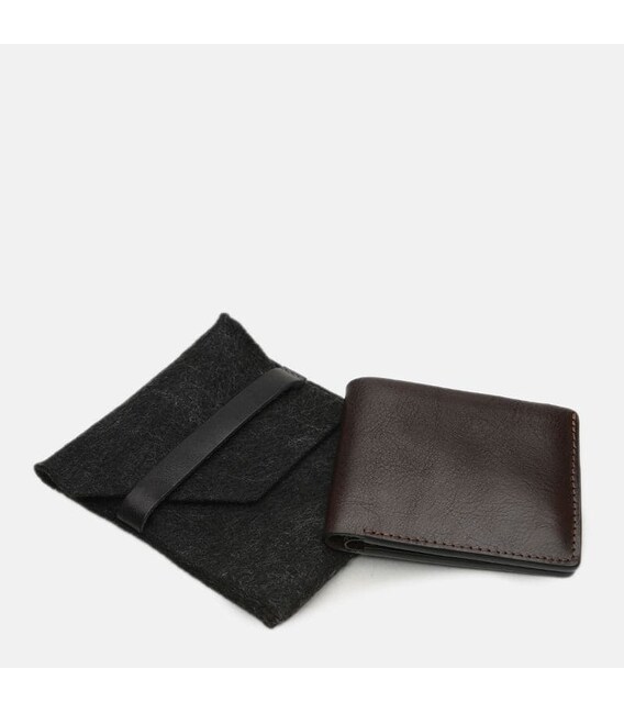 Якісний чоловічий гаманець з натуральної шкіри. Функціонал: 2 відділення для купюр, 3 слота для кредитних карт, монетниця. Гаманець надійно прошитий, має приємну на дотик м'яку глянцеву шкіру і зручну внутрішню застібку (кнопка магніт). У комплекті: гаманець + чохол (фетр).