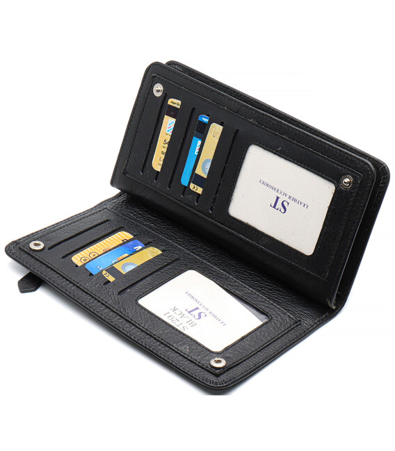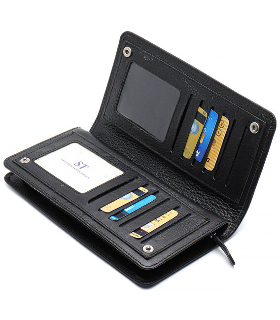 Чорний багатофункціональний чоловічий гаманець з натуральної шкіри МС291