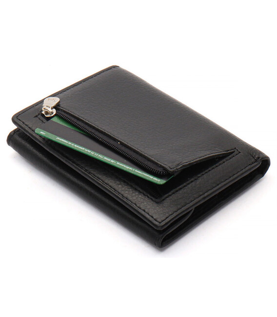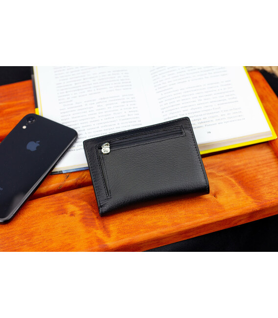 Шкіряний чоловічий гаманець відрізняється нестандартним дизайном, оскільки виконаний вертикально. Хоча для купюр тільки одне відділення, 5 прилеглих кишень також чудово підходять для зберігання грошей. Виріб фіксується магнітом. У вільному доступі знаходяться 7 секцій для банківських карток, що легко виймаються. Для монет найкраще використовувати зовнішню кишеньку на блискавці. Спеціальний бічний розширювач дозволить покласти у відділення більше монет.