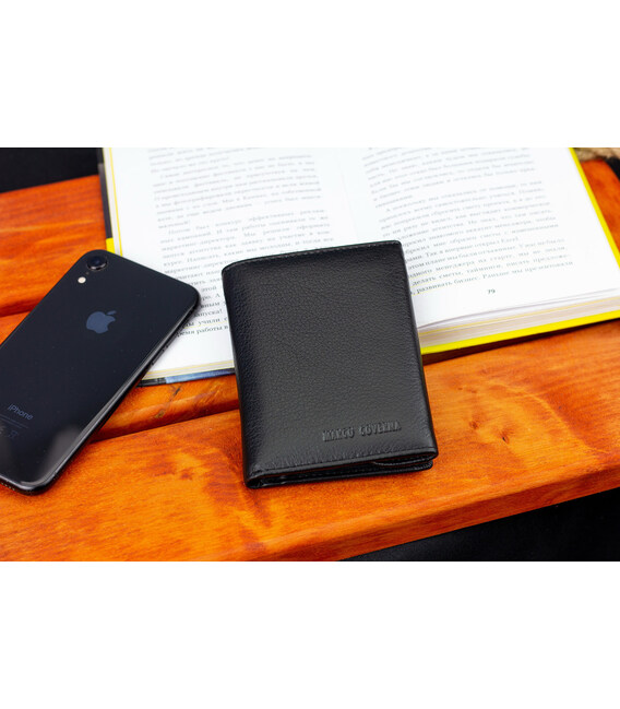 Чорний чоловічий гаманець вертикального типу з натуральної шкіри на магніті Marco Coverna MC-1286