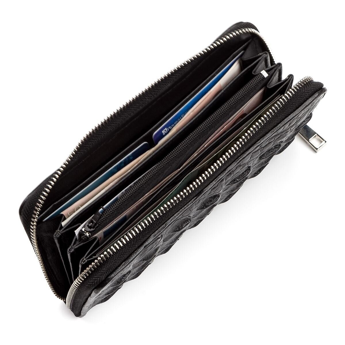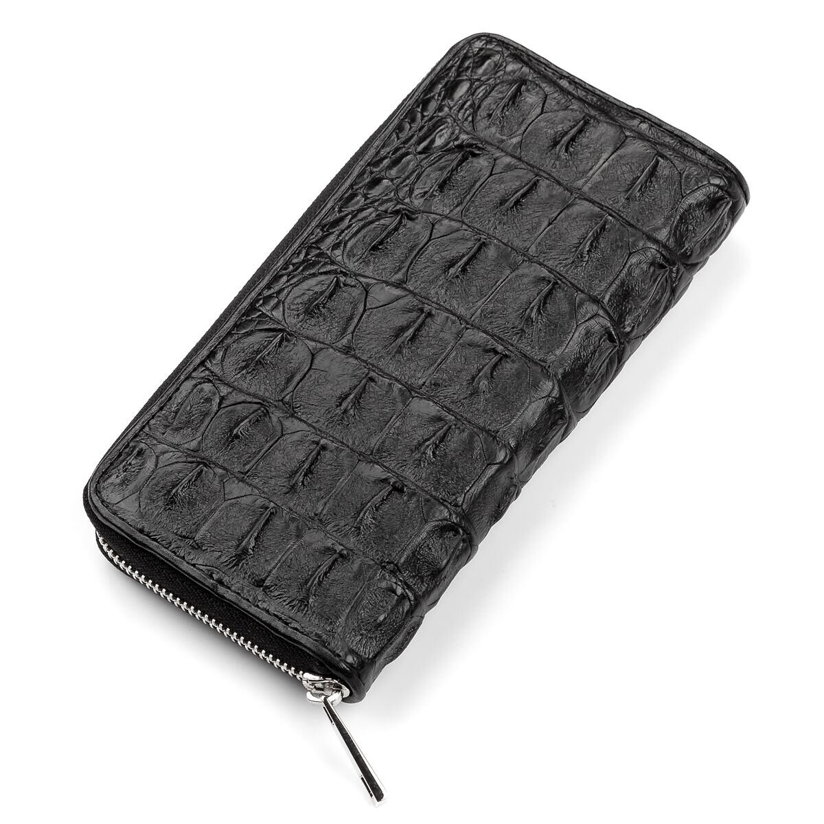Гаманець з натуральної шкіри крокодила, кожен виріб з цього матеріалу володіє своєю незвичайною структурою і неповторним візерунком. У аксесуарі використана виключно якісна фурнітура, срібного кольору. Вироби зі шкіри крокодила завжди вважалися великою розкішшю, так як в світі не так вже й багато компаній, які займаються обробкою такої шкіри, оскільки цей процес дійсно надзвичайно трудомісткий. Ідеальний подарунок для людей, які люблять все дороге і унікальне.