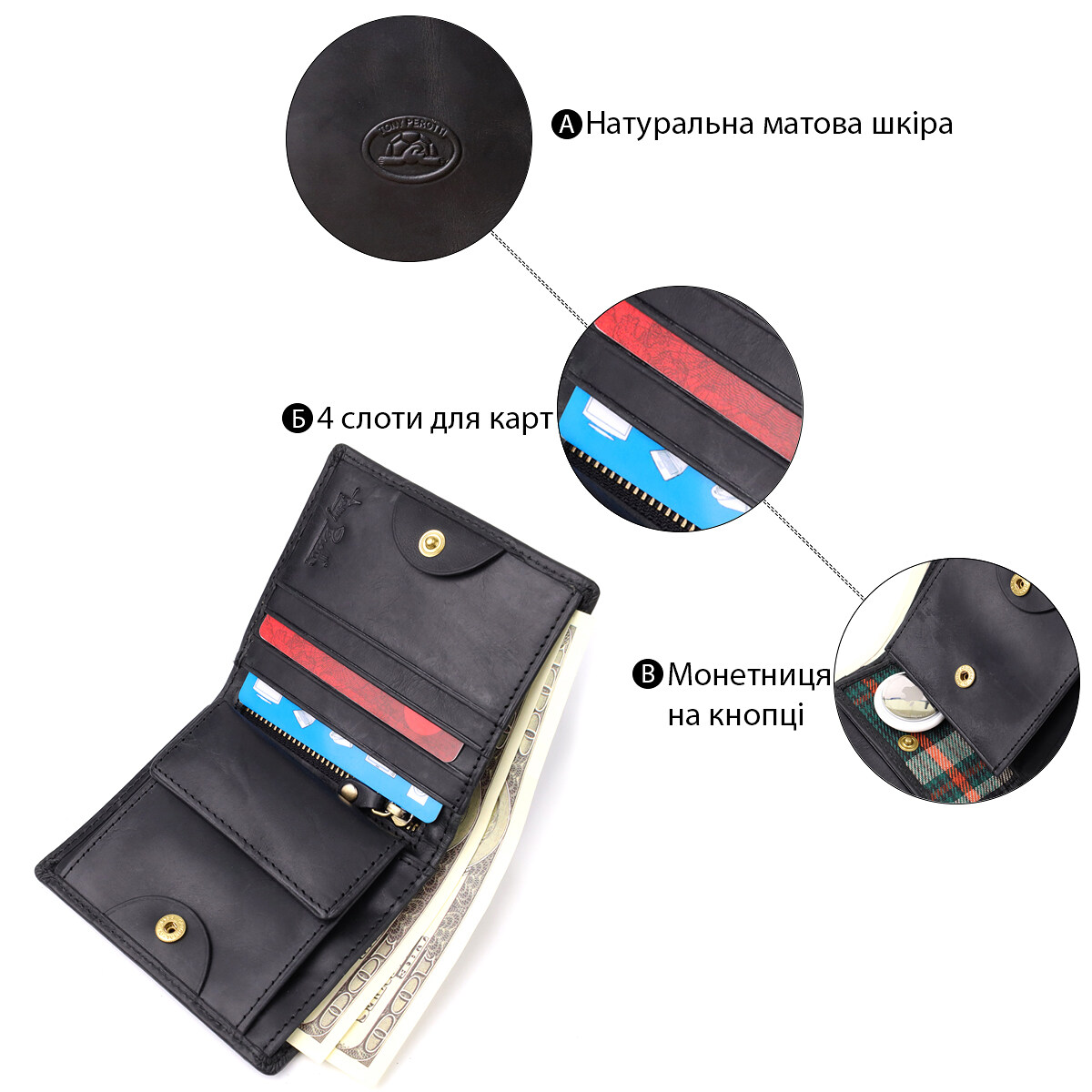 Ідеальний аксесуар для сучасного чоловіка, що цінує якість та елегантність. Гаманець виконаний з матової натуральної шкіри преміальної якості у класичному чорному кольорі. Лаконічний дизайн з тисненим логотипом Tony Perotti у центрі робить його універсальним та статусним. Такий гаманець стає не просто аксесуаром, а відображенням характеру: впевненість, смак та увага до деталей. Підходить як для щоденного використання, так і як подарунок чоловікові, який цінує справжню якість.
