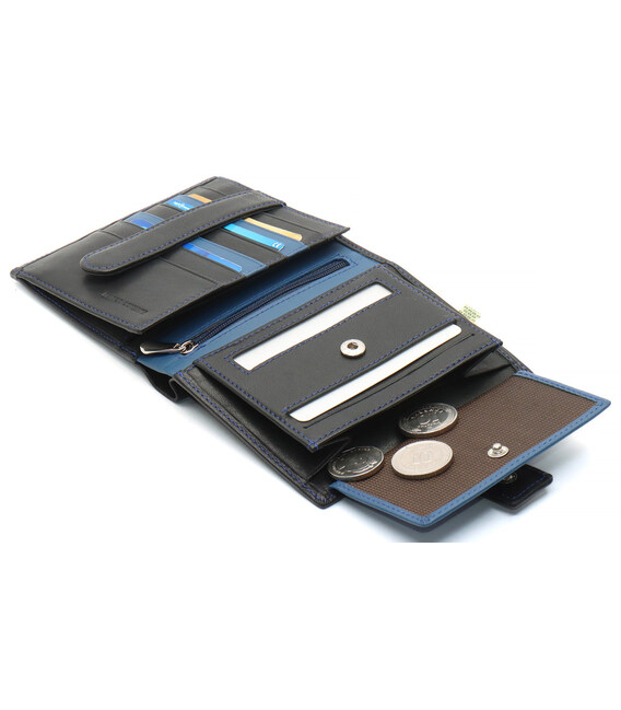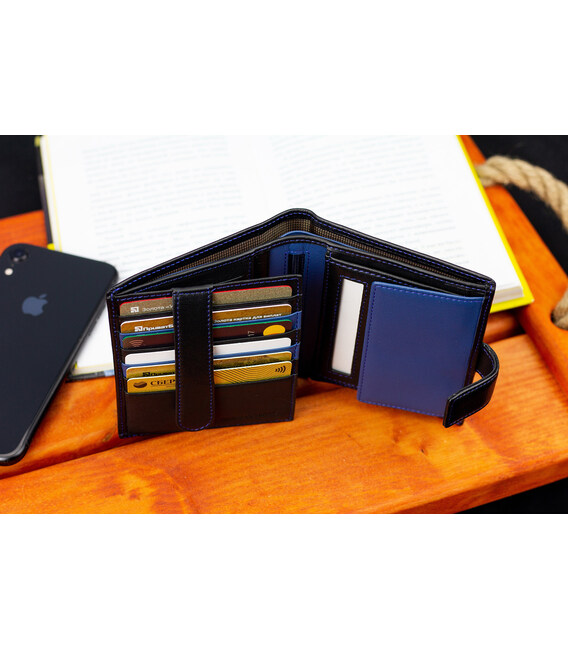 Чоловічий гаманець ідеально підійде тим, хто хоче мати все й одразу. Для цього у виробі передбачено два вмістовні відділення під банкноти, габаритну монетницю та блок для карток. Оригінальний дизайн моделі дозволяє швидко відкривати аксесуар. До того ж у цьому чоловічому шкіряному гаманці є фіксатор, який тримає блок для дев'яти банківських карток. Документи зручно носити у прозорій кишені. По центру розташована врізна кишеня на блискавці, призначена для особливо цінних речей.
