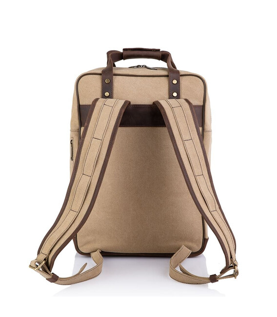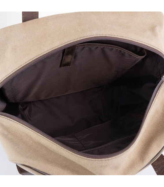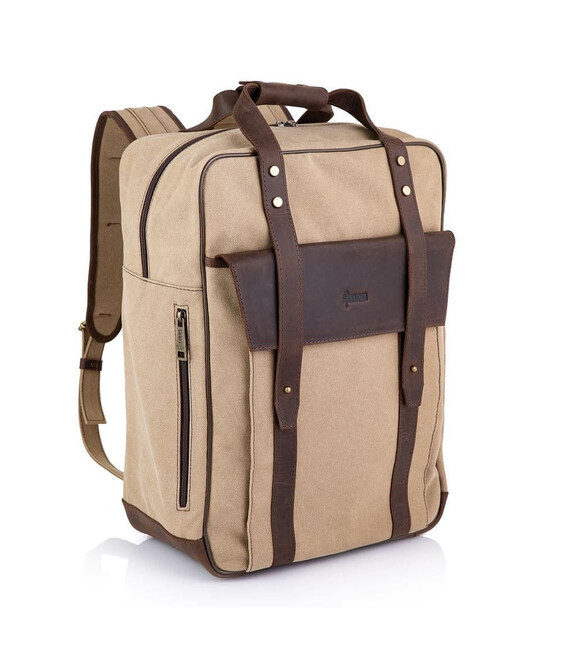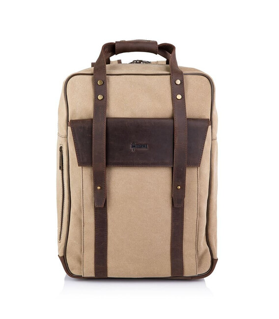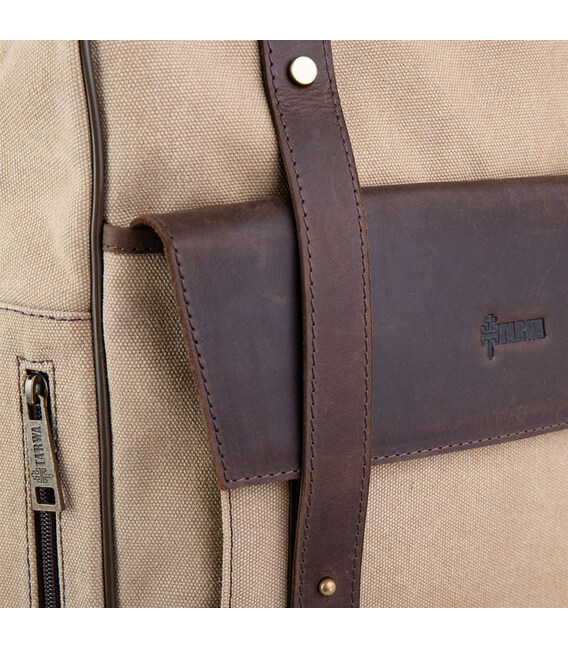 Сумка-рюкзак трансформер, мікс канвасу пісочного кольору і коричневої шкіри RC-3943-4lx, від українського бренду TARWA. Модель призначена для перенесення ноутбука, документів тощо.