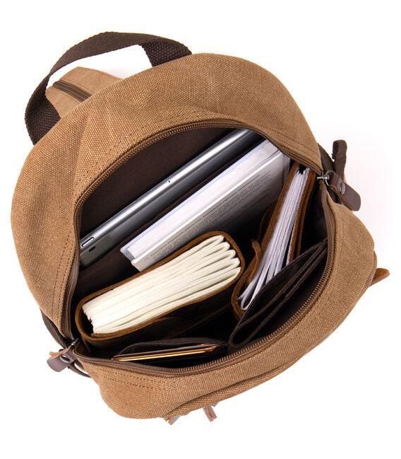 Легкий і стильний рюкзак на кожен день. Виконаний з універсального кольору хакі. Виріб має невеликий розмір і компактні габарити. Рюкзак доповнений самим необхідним функціоналом.
