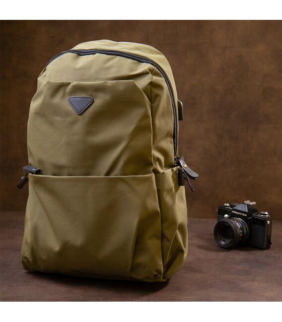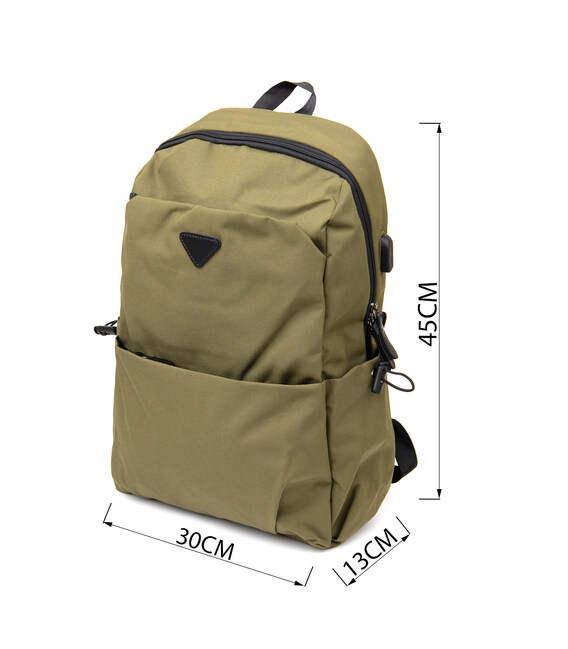 Текстильний функціональний рюкзак дуже легкий і практичний в оливковому кольорі. Виріб має оптимальний розмір для вашої зручності. Функціонал рюкзака продуманий під сучасного клієнта, який не уявляє своє життя без гаджетів. Роз'єм і шнур в комплекті для вашої зручності. На тильній стороні петелька, яка дозволить вам зафіксувати каремат. З таким рюкзаком зручно відправитися в подорож або на відпочинок, або використовувати його в якості рюкзака під ноутбук. Виріб - відмінний варіант для занять спортом. Закривається рюкзак на блискавку і має одне основне відділення. Рюкзак має ущільнену спинку, яка фіксує вашу спину і зменшує навантаження. Тканинний рюкзак стане хорошим подарунком для ваших близьких і найголовніше дуже корисним і необхідним.