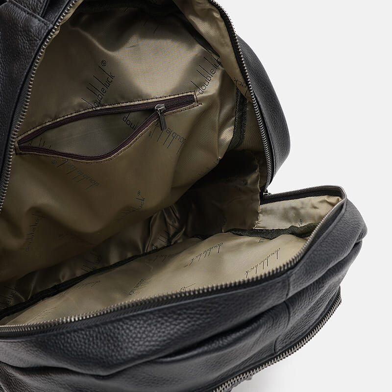 Місткий чоловічий рюкзак для міста та подорожей виконаний з натуральної шкіри. Має 2 відділення на блискавках. Всередині 1 середня кишеня на блискавці. З лицьової сторони 2 горизонтальні кишені на блискавці. З тильної-1 кишеня на блискавці. Підкладка-текстиль. Фурнітура-метал. Колір фурнітури-срібло. Плечові шкіряні ремені регулюються по довжині.