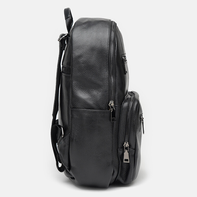 Практична і стильна модель шкіряного чоловічого рюкзака. Закривається на блискавку, має 1 відділення. Внутрішні 2 кишені. З лицьового боку-3 кишені на блискавці, з тильної-1 горизонтальна кишеня на блискавці. З боків-кишені. Підкладка-текстиль. Колір фурнітури-срібло. Фурнітура-метал. Плечові ремені регулюються по довжині.