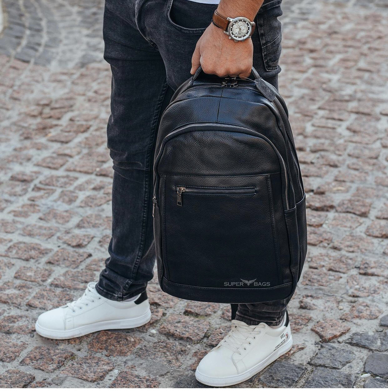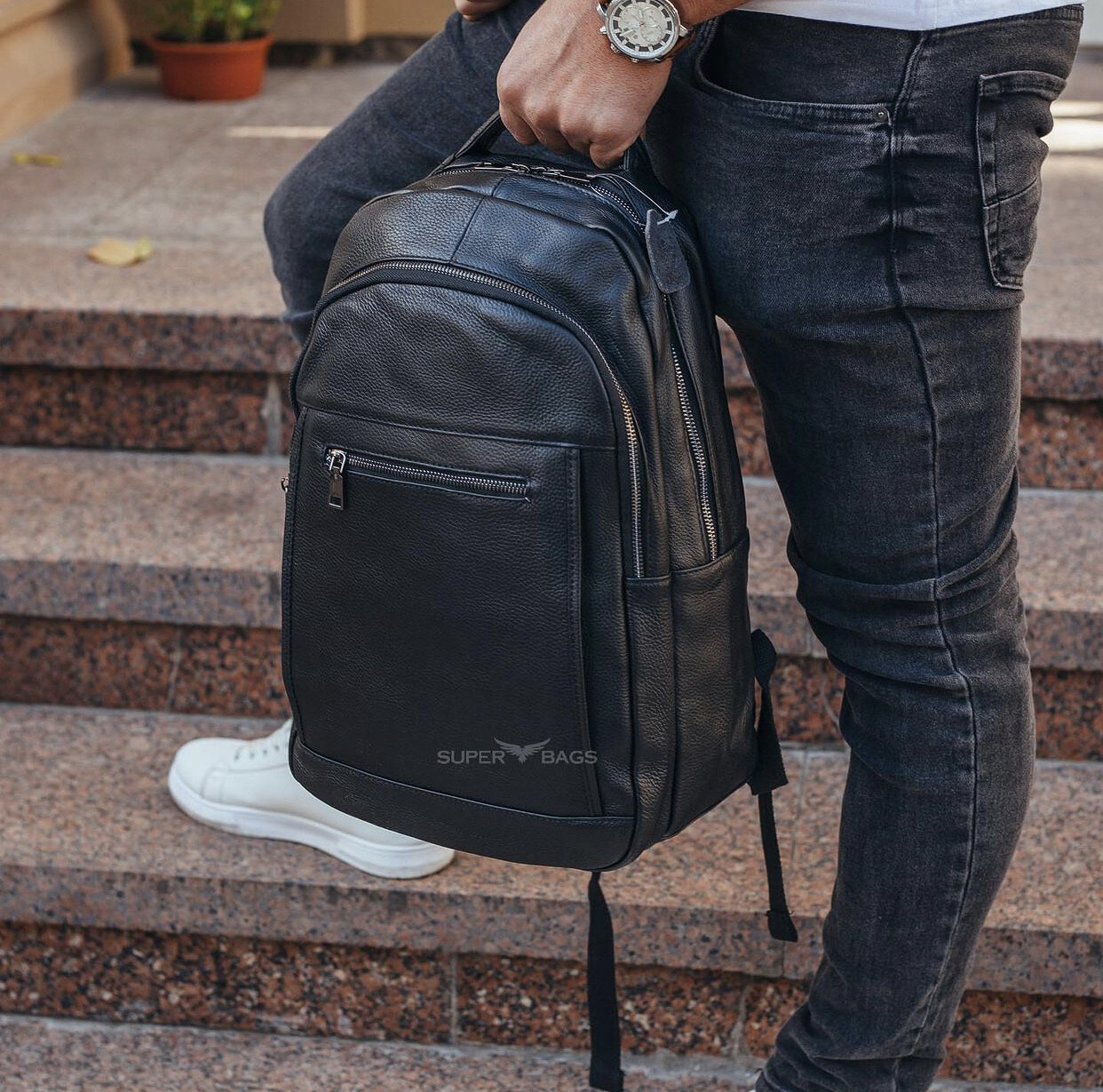 Шкіряний чоловічий рюкзак для ноутбука та поїздок чорний Tiding Bag D3-93438