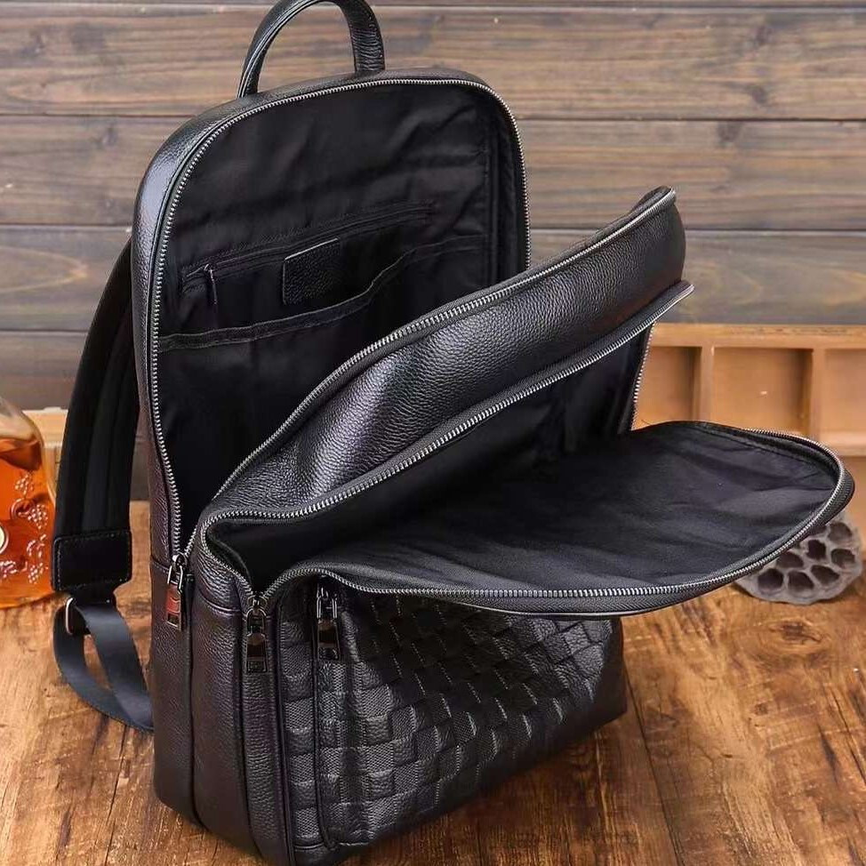 Рюкзак чоловічий шкіряний. Чорний міський рюкзак для ноутбука та документів Tiding Bag 13292
