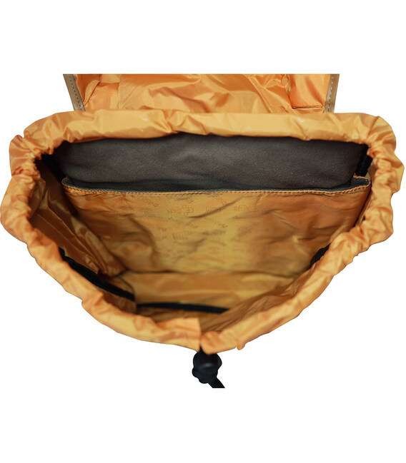 Верх рюкзака має затяжку на шнурку та клапан із металевими пряжками. Для комфорту передбачені м'які регульовані лямки й ущільнена спинка.