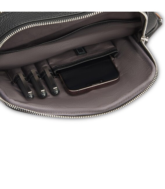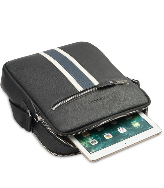 Вертикальна сумка через плече, виготовлена з натуральної шкіри. Оснащена двома глибокими основними відділеннями з відділами для смартфона, планшета 11" та пишучих предметів. З зовнішнього боку сумки розміщена невелика кишеня для речей першої необхідності. Також, задня частина виробу оснащена додатковою кишенею на блискавці. Для зручності перенесення сумка обладнана ременем, що регулюється по довжині.