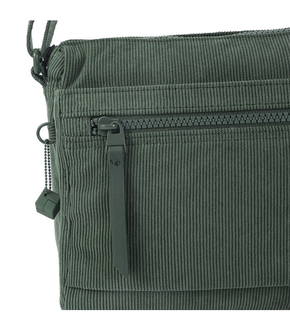 Зручна жіноча сумка через плече, невеликого розміру виготовлена з міцної тканини з ременем, що дозволяє регулювати довжину. У вироби є три відділення на блискавці, в одному з яких є кишеня на блискавці і кишеня для документів, телефону і дрібниць. На фасадній частині розташована кишеня на блискавці.