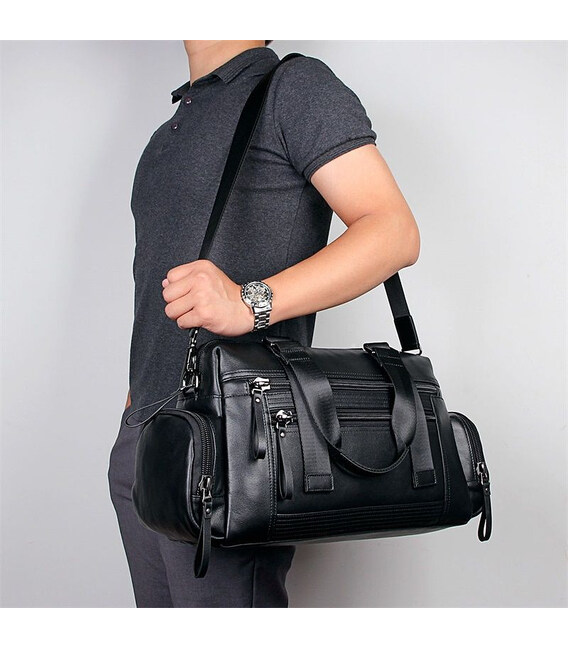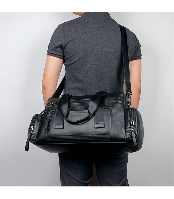 Детальніше Шкіряна дорожня спортивна сумка через плече чорна John McDee 7420A