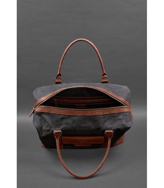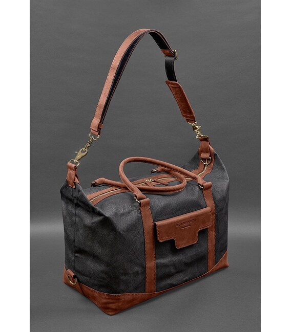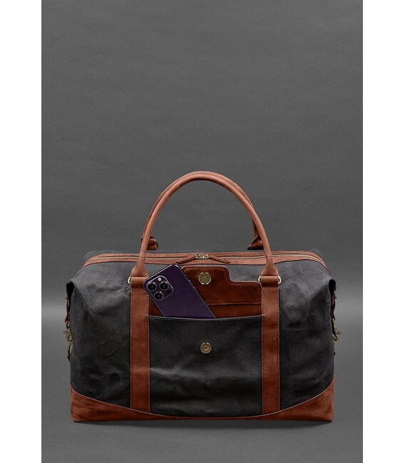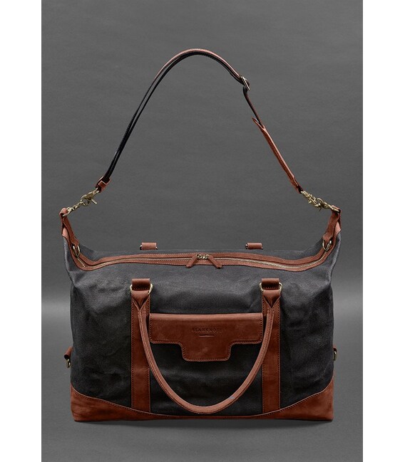 Дорожня сумка з канвасу та натуральної шкіри Crazy Horse від бренду Banknote - це стильний та практичний аксесуар, який допоможе вам подорожувати з комфортом і зберегти ваші речі у відмінному стані. Вона виготовлена з високоякісного канвасу, що забезпечує міцність і довговічність виробу. Ручки, дно, обшивка кишень та блискавок сумки виконані з натуральної шкіри, що надає сумці розкішний вигляд і додає додаткової стійкості. Сумка закривається на металеву блискавку, яка гарантує безпеку вашим речам. Завдяки знімному плечовому ременю з натуральної шкіри ви можете легко носити сумку на плечі для зручності. Розмір сумки можна регулювати за допомогою бокових кріплень, що дозволяє збільшувати або зменшувати об'єм сумки залежно від ваших потреб. Це особливо зручно під час подорожей, коли ви можете мати різні обсяги речей і потребуєте гнучкості. Зовні сумки розташована одна кишеня на кнопці, де ви можете зберігати речі, до яких потрібно швидкий доступ, такі як телефон або документи. Всередині сумки є одне просторе відділення, яке забезпечує велику місткість для вашого багажу. Крім того, є кишеня на блискавці, де ви можете зберігати менші предмети або цінні речі. Дорожня сумка від бренду Banknote - це не лише функціональний аксесуар, але і стильний елемент вашого образу. Її елегантний дизайн і використання натуральної шкіри надають їй шарму і привабливості. Комбінація канвасу і шкіри створює гармонійний контраст, що робить сумку універсальною і підходить для різних стилів одягу.