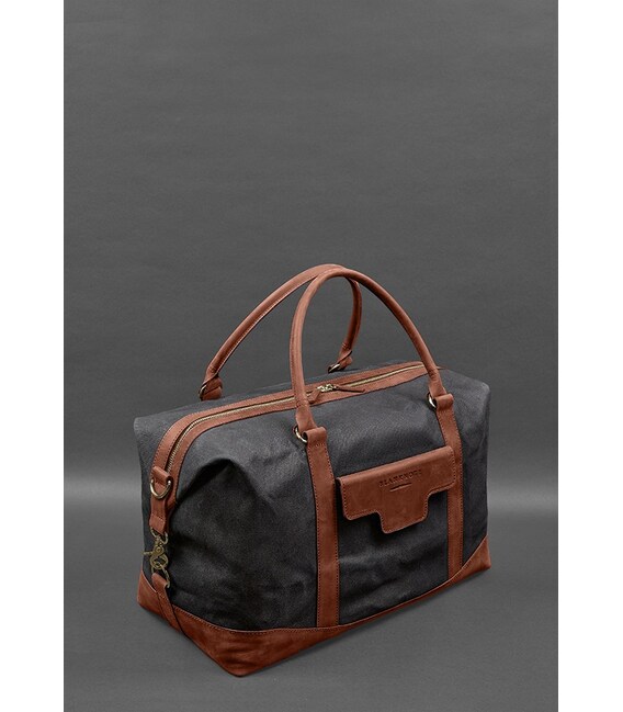 Дорожня сумка з канвасу та натуральної світло-коричневої шкіри Crazy Horse