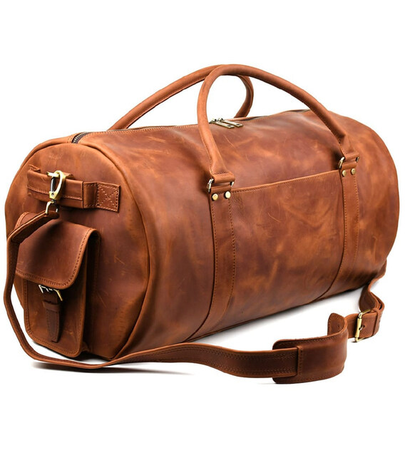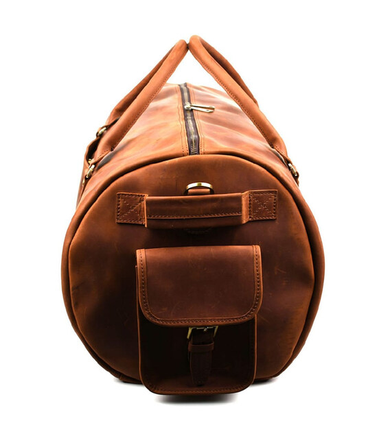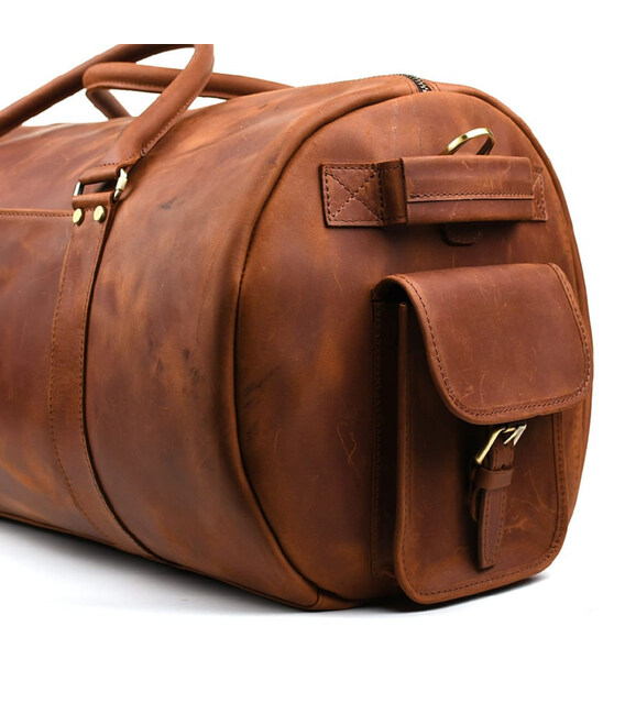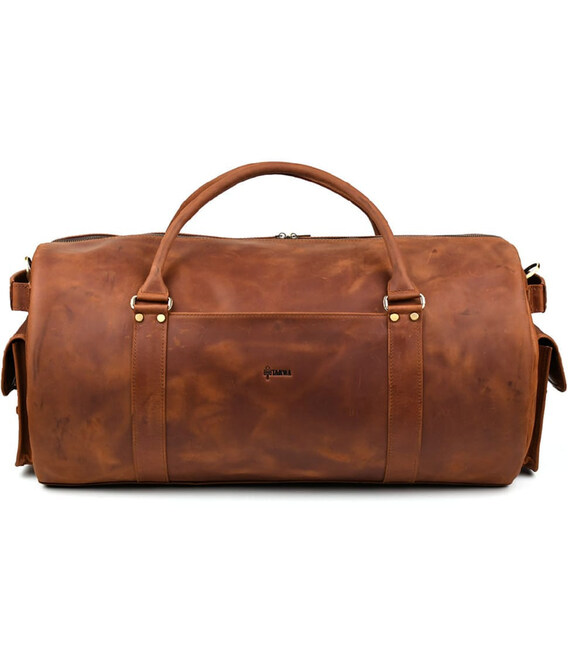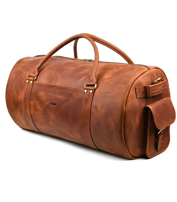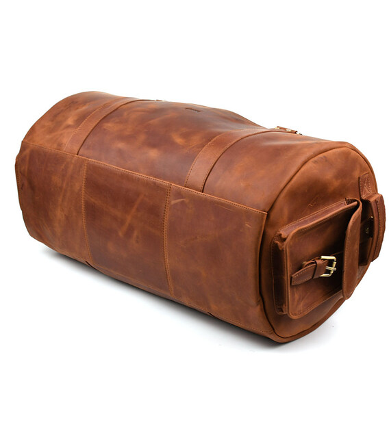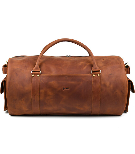 Незамінний дорожній аксесуар - сумка у вигляді барила з натуральної шкіри шкіри рослинного дублення з бічними, фронтальними і тильними кишенями. Дорожня сумка баул із натуральної шкіри. Дорожня сумка баул із натуральної шкіри RB-6564-4lx TARWA коньячна