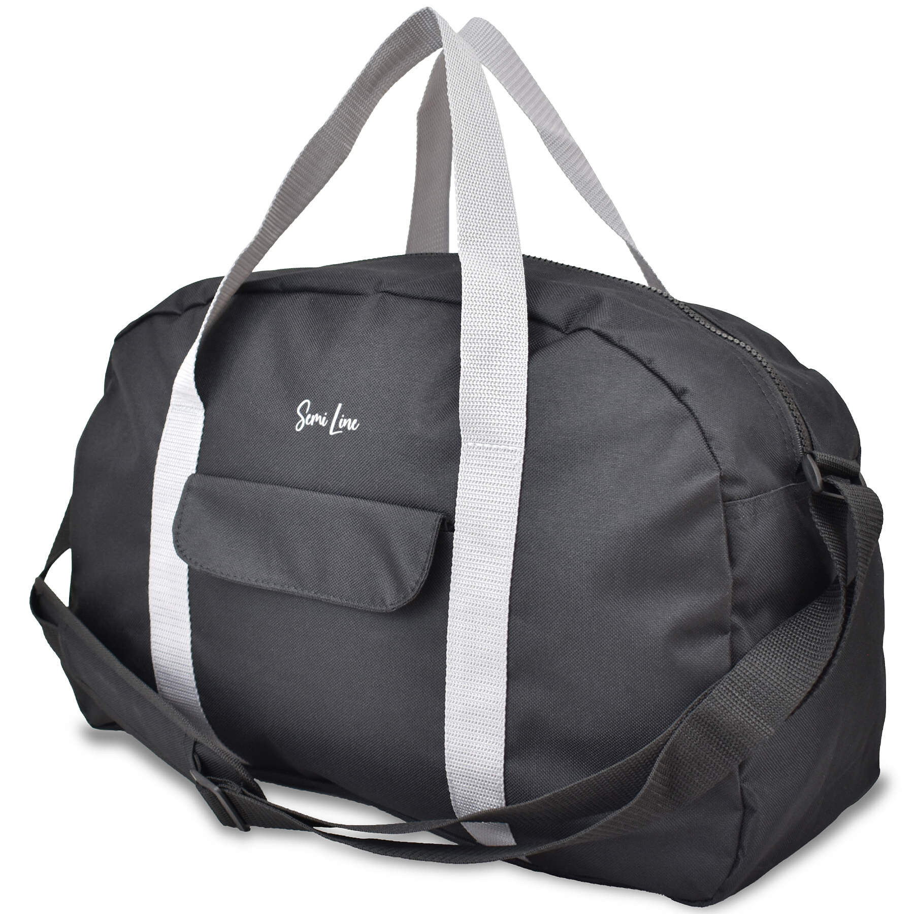 Компактна і легка сумка для фітнесу і подорожей Semi Line A3027 має м'які пулери на блискавках з міцного полімеру і додаткові бічні кишені для дрібниць і документів. Вона обладнана широкими ручками і регульованим плечовим ременем з максимальною довжиною 123 см. Внутрішній простір об'ємом 22 л дозволяє вмістити все найбільш необхідне для тренування або короткої поїздки. Сумка виготовлена з міцного поліестеру 600D з внутрішнім водостійким PVC покриттям.